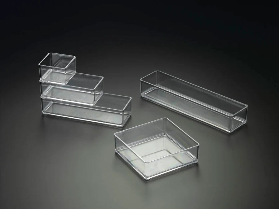 Customize the drawers in your bathroom. kitchen. office. and other storage areas around your home with the Acrylic Storage Tray. This drawer organizer comes in several different sizes so you can customize the storage space in the drawer to meet your current or future storage needs. Whether you need to store office supplies or cosmetics. the acrylic drawer bins makes it easy to store small or large accessories inside any drawer.