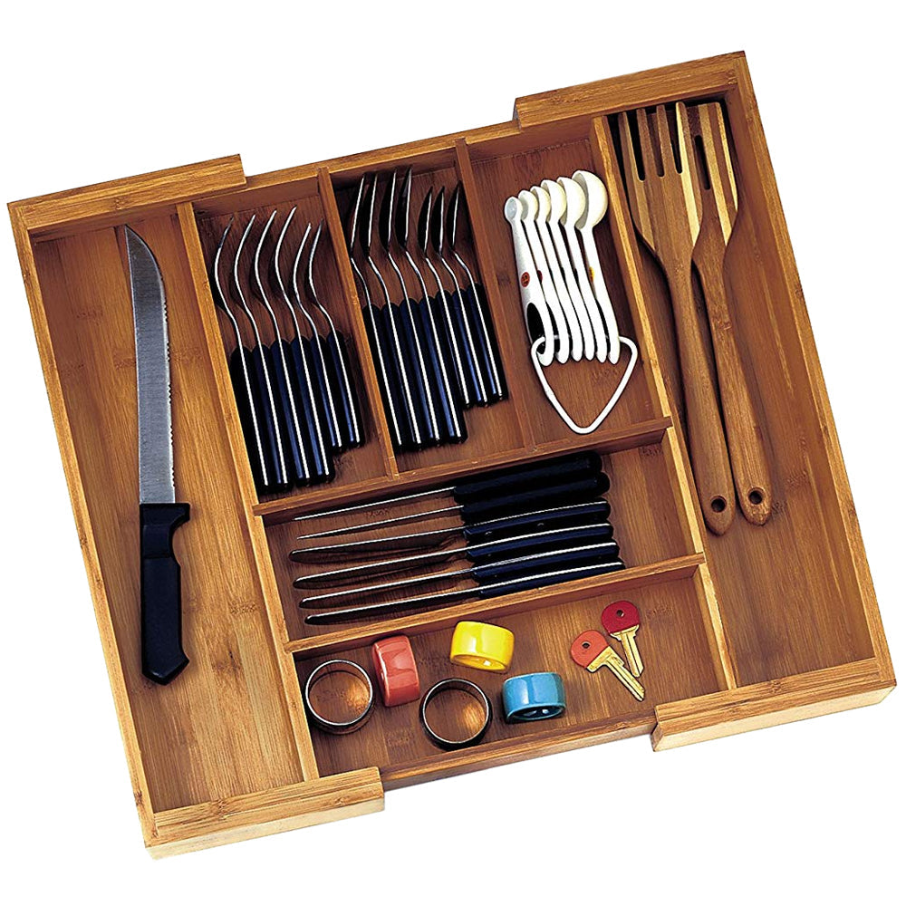 Bamboo Expandable Flatware Organizer Features: