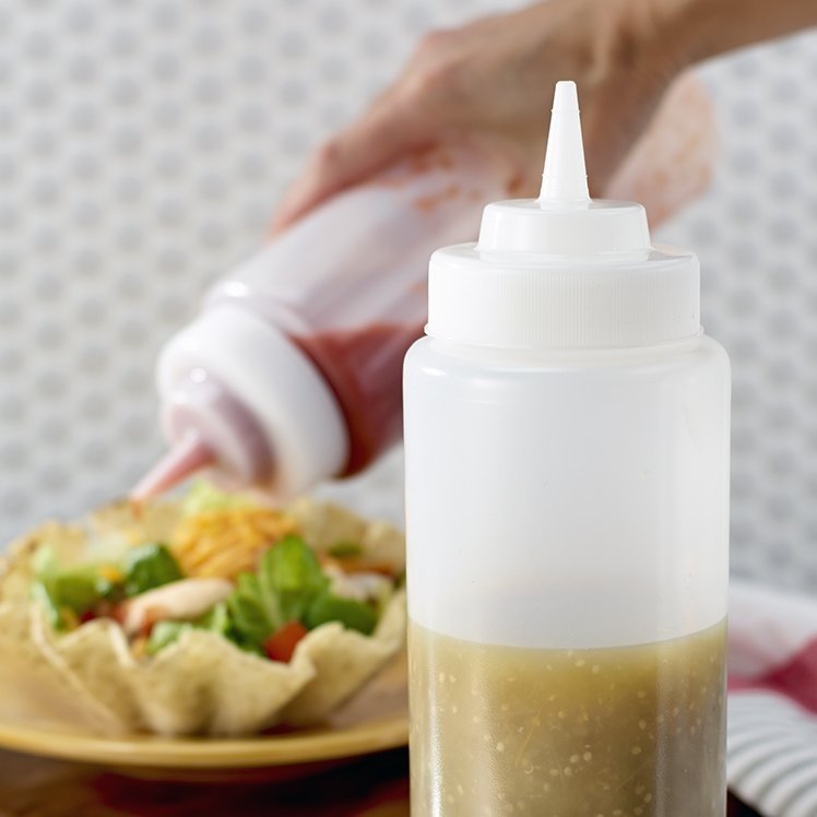 Keep salad dressing handy for patrons. or guests at your next social gathering or family picnic with a 12 Ounce Diner Style Squeeze Dispenser. This retro condiment bottle is a clean and child friendly way to add dressing or oil to any meal. and is perfect for use at home. a camp mess hall. and in small diners and restaurants.