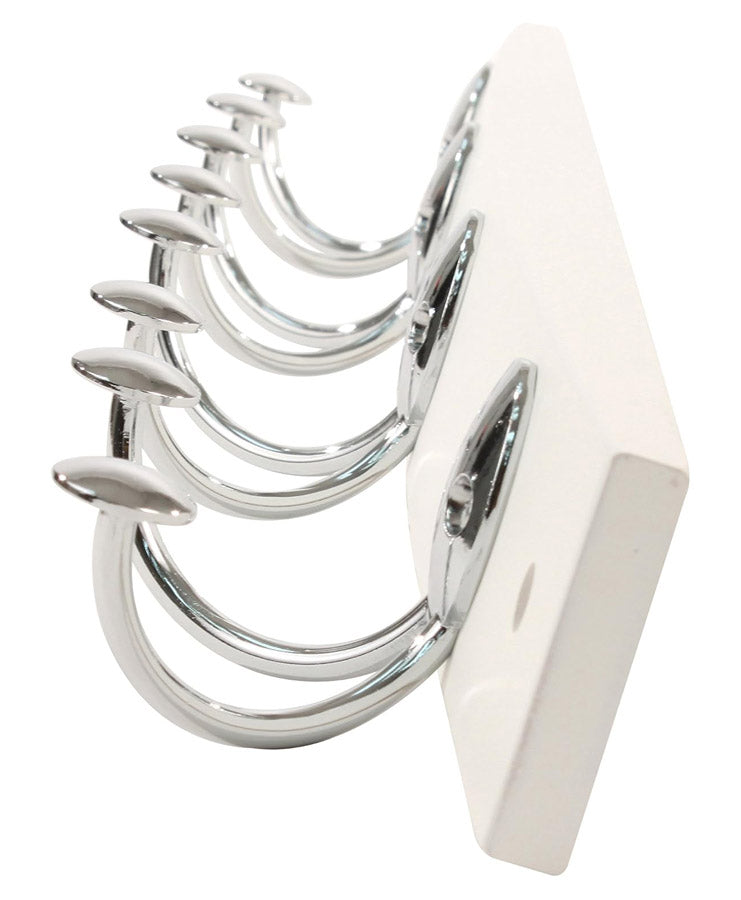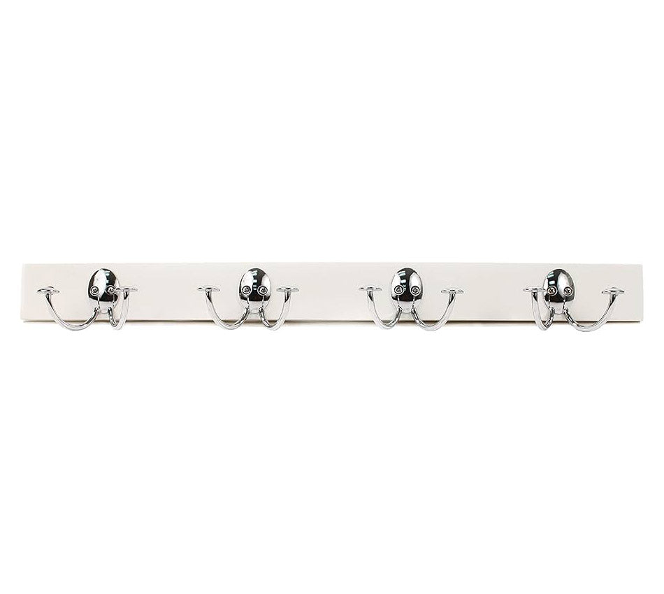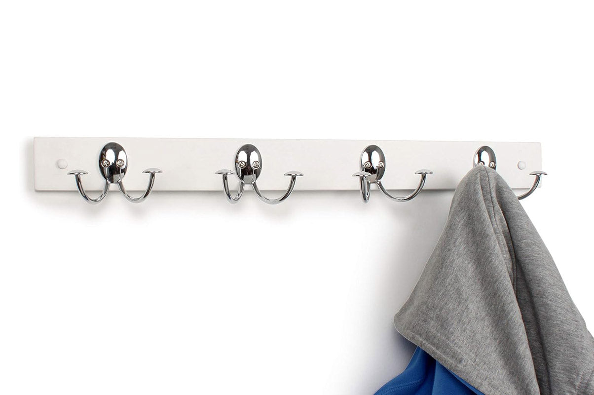 - Four double hooks provide a total of eight hooks to store coats. hats. backpacks. towels. robes. and more