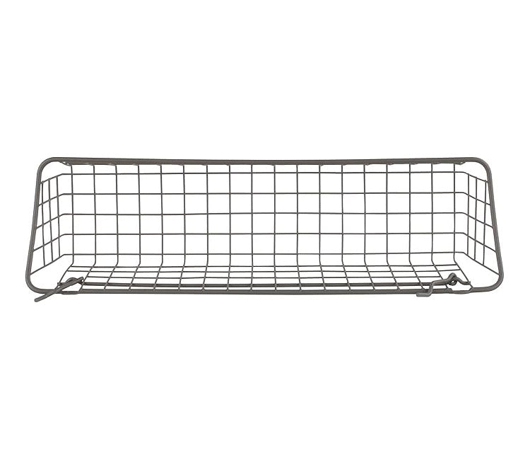 Each storage basket is crafted from long-lasting and heavy-duty steel wire with a powder-coated gray finish to complement most any decor. The wire is arranged in a square grid pattern to prevent small accessories from falling through and to keep larger supplies neatly stored. Four sizes are currently available so you can customize your storage space to your current needs. So add the wire storage basket to any space in your household to keep supplies sorted. organized. and easy to reach.